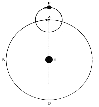 ![]() The small circle centered around Point A at the top of the figure is an example of an epicycle. The idea was, the center of the epicycle (Point A) would rotate uniformly around the Earth (Object E), while the planet (Object P) would rotate uniformly around Point A. The combination of these two motions could produce an apparent retrograde motion as seen from the Earth. (Imagine Object P on the bottom of the epicycle, where it would be moving opposite to the rotation of Point A.) These geometrical constructions were used because early astronomers were convinced that only uniform circular motion was appropriate for describing the paths of heavenly bodies. But simple circular models could not explain the odd, looping motions of the planets, so they turned to more elaborate models which piled circles upon circles. A Ukrainian translation of this page is available here: Ukrainian |